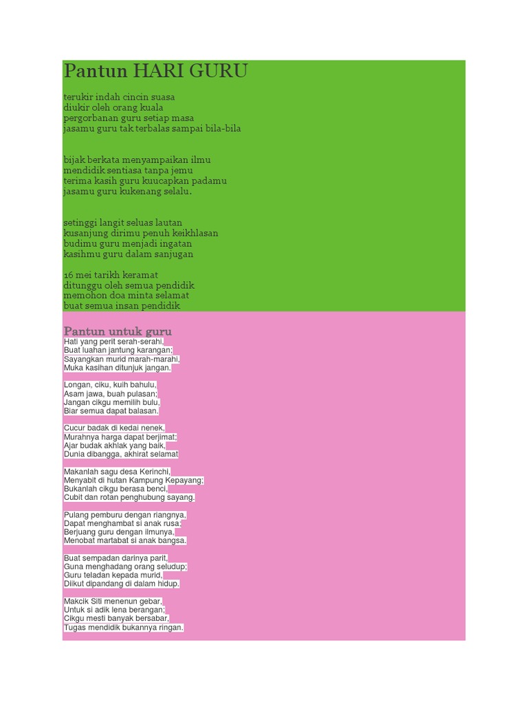 Selamat Hari Guru Pantun : We did not find results for:. Maybe you would like to learn more about one of these? Check spelling or type a new query. We did not find results for: